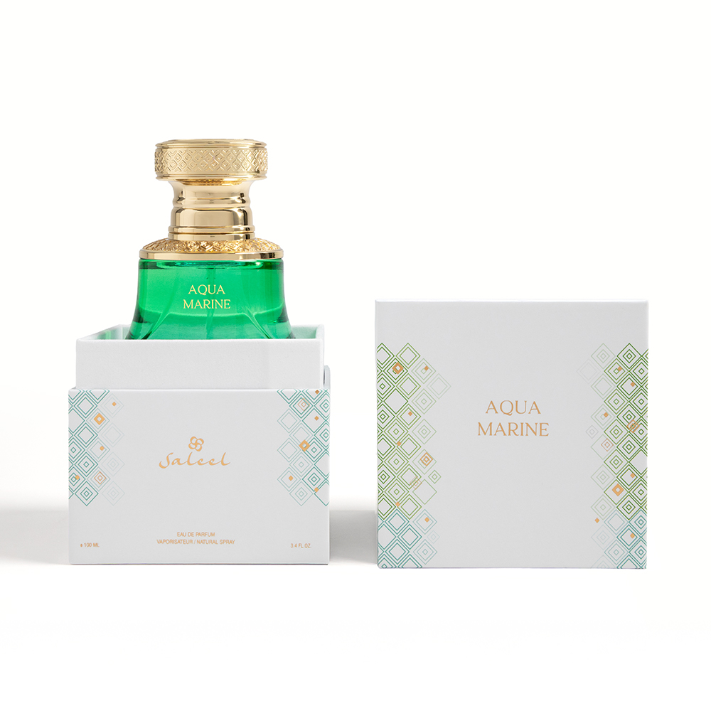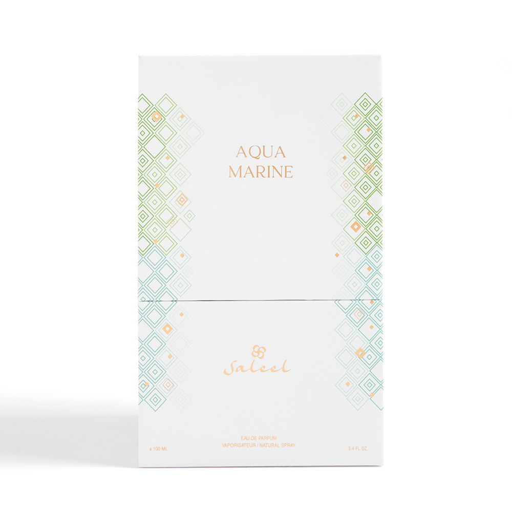 Saleel Aquamarine embodies the serenity and power of the ocean. Opening with a refreshing breeze of linden blossom, jasmine, and sea salt, it captures the essence of coastal air in its purest form. The heart blooms with heliotrope and orange blossom, enhanced by the earthy elegance of vetiver. Finally, amber and patchouli create a grounding, long-lasting base that lingers like a tranquil sea breeze after dusk. Aquamarine is a sophisticated, aquatic-floral fragrance that feels clean, fresh, and timeless - perfect for everyday wear or seaside escapes.