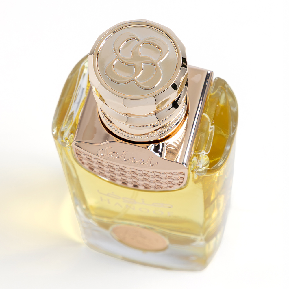 de Parfum exudes warmth and depth, capturing the essence of oriental charm. A bold opening of Calabrian bergamot, hazelnut, and saffron blends seamlessly with cinnamon, nutmeg, and tagete, resting on a rich amber, musk, and tonka base for an unforgettable impression.