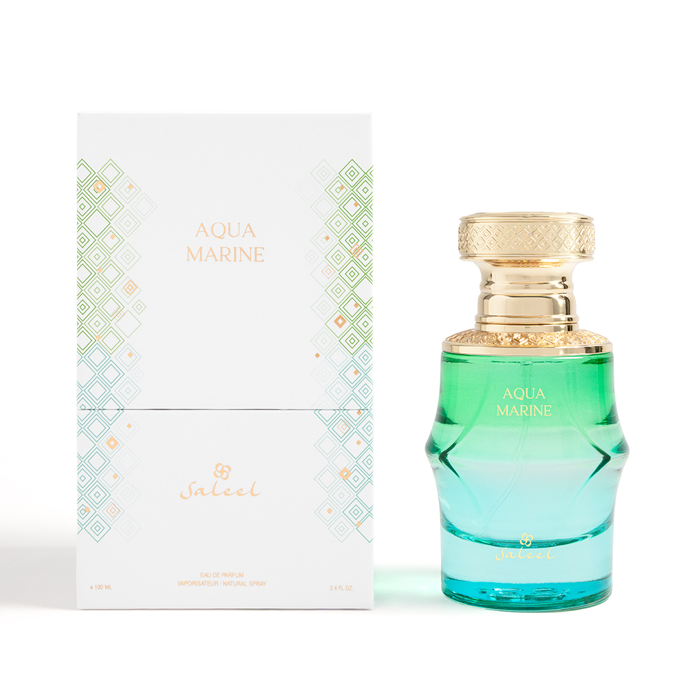 Saleel Aquamarine embodies the serenity and power of the ocean. Opening with a refreshing breeze of linden blossom, jasmine, and sea salt, it captures the essence of coastal air in its purest form. The heart blooms with heliotrope and orange blossom, enhanced by the earthy elegance of vetiver. Finally, amber and patchouli create a grounding, long-lasting base that lingers like a tranquil sea breeze after dusk. Aquamarine is a sophisticated, aquatic-floral fragrance that feels clean, fresh, and timeless - perfect for everyday wear or seaside escapes.