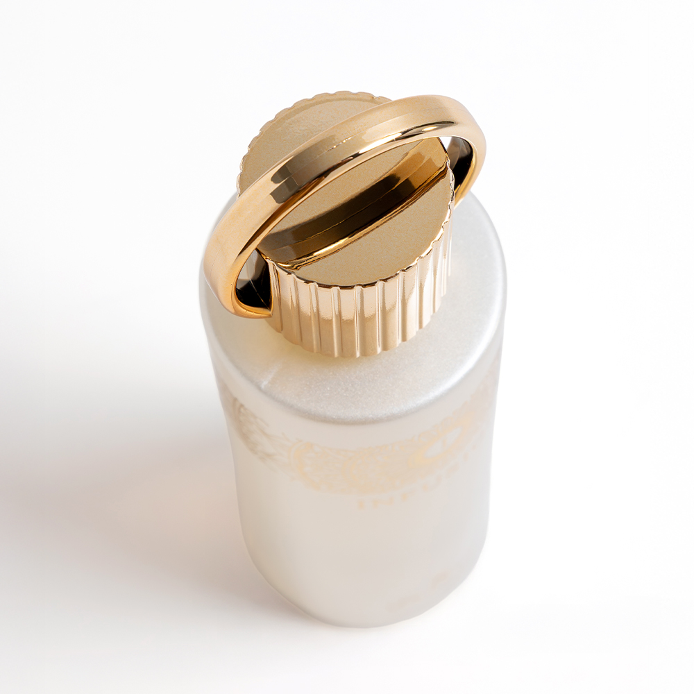 de Parfum, a fragrance that invites you into a world of lush, tropical aromas. The top notes of bergamot, passion fruit, and peach provide a fresh and fruity opening that awakens the senses. As the fragrance evolves, the heart reveals a delightful mix of geranium flower, caramel, and jasmine, creating a rich, sweet floral bouquet that enchants the wearer. The base notes of patchouli Madagascar, ambergris, and white musk deliver a warm, sophisticated finish that lingers beautifully. This perfume is perfect for those who love a sweet yet elegant scent that can transition from day to night effortlessly.