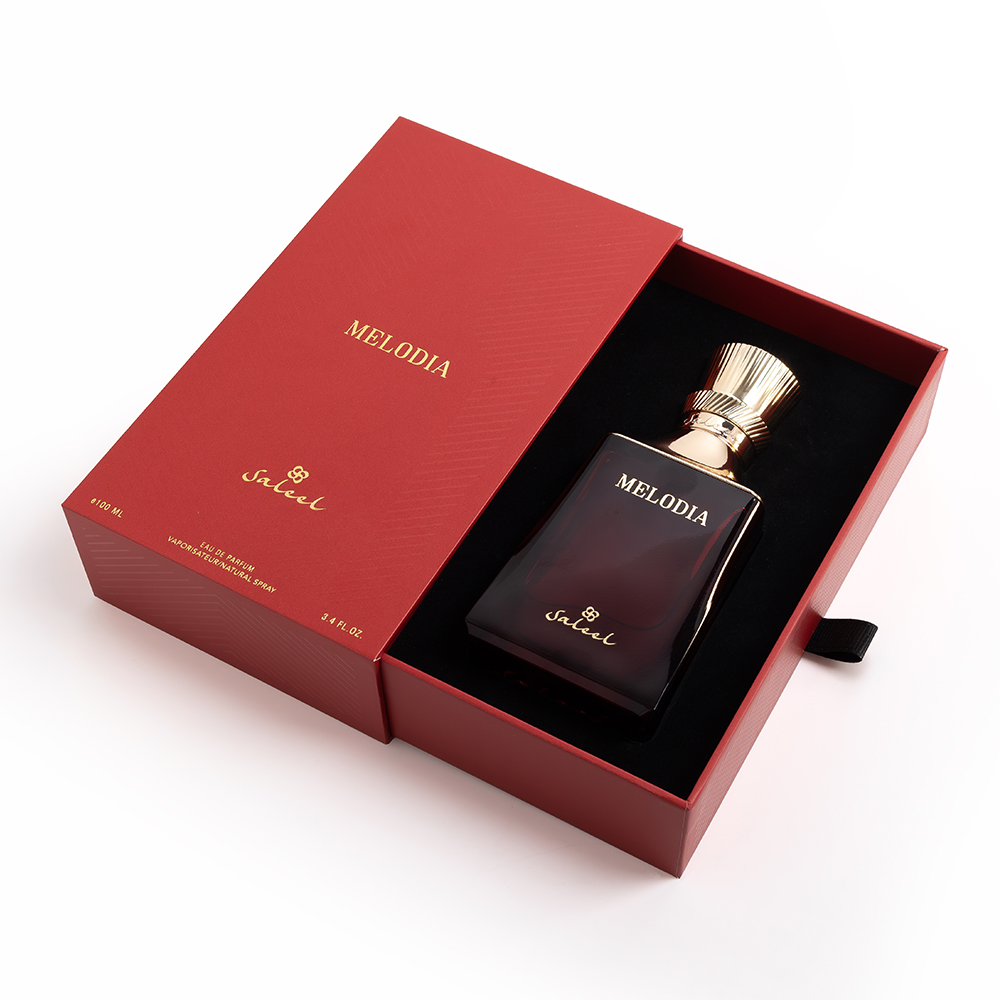 de Parfum is a symphony of sweetness and sophistication. The fragrance opens with bright bursts of strawberry, peach, blackberry, and caramel, blending into a soft floral heart of jasmine sambac, violet, and rose. The base of vanilline and ambroxan lingers gracefully, leaving a warm, sensual trail that captures the essence of elegance and joy.